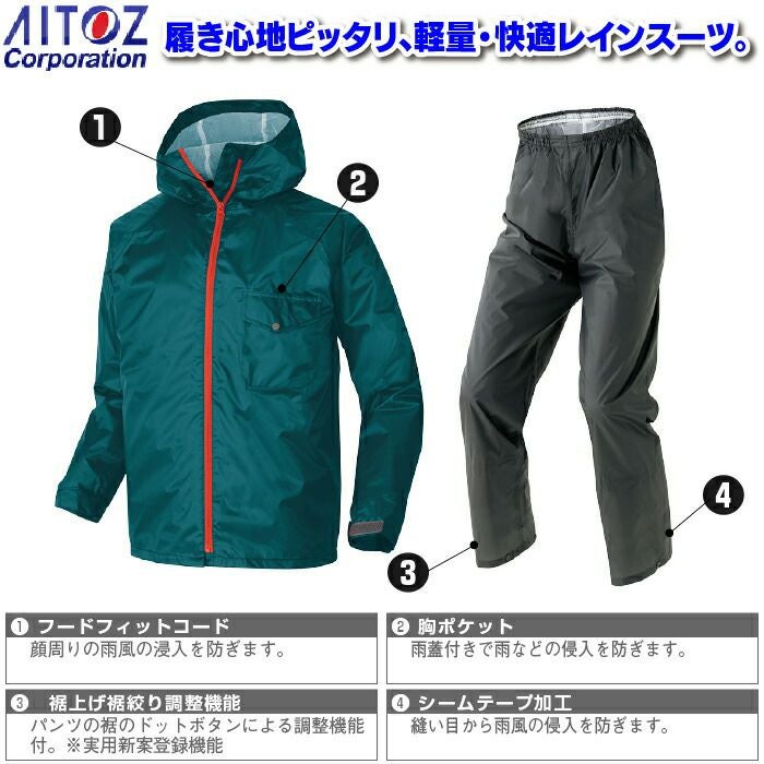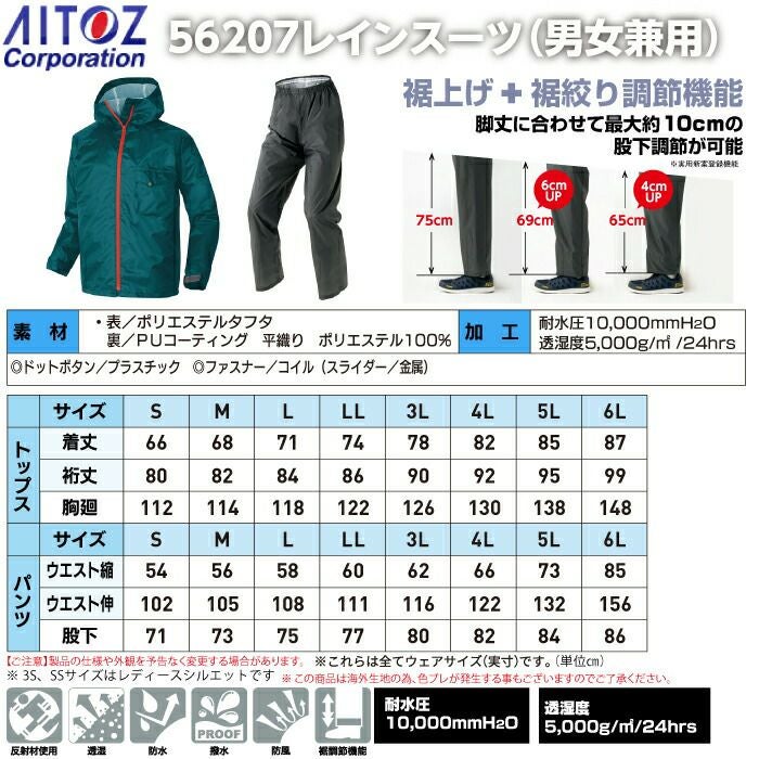 アイトス Aitoz 作業服 作業着 作業ズボン レインウエア オールシーズン アイトス AZ-56207 レインスーツ(男女兼用) S-LL
