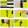 蛍光素材と再帰反射テープを使用した高視認性レインウエア。薄暮や夜間作業時の視認性を高めることで、着用者の安全性を考慮した一着。着用者のあらゆる動きに対し、全方向から認識可能な設計になっており、安全性を高めています。※製品のお取扱いについて。本製品は薄暮や夜間作業時等における衣服着用者の視認性向上による安全保護を目的としておりますが、本製品を着用することで事故が起きないといった保証をするものではございません。反射テープ表面に汚れや汗、その他の水分が付着した場合は反射テープの変色を防ぐ為、出来るだけ早めに中性洗剤またはきれいな水で洗い流し、柔らかい布を用いて拭き取ってください。反射テープは表面にガラスビーズを塗布して製造しています。ご家庭での繰り返しの洗濯や洗濯表示以外の取扱い、または局部的に摩擦を受けた場合は、反射輝度が低下する恐れがあります。漂白剤は反射テープにダメージを与える恐れがありますので使用しないでください。※本製品はISO20471規格に準拠した日本製の再帰性反射テープを使用しています。