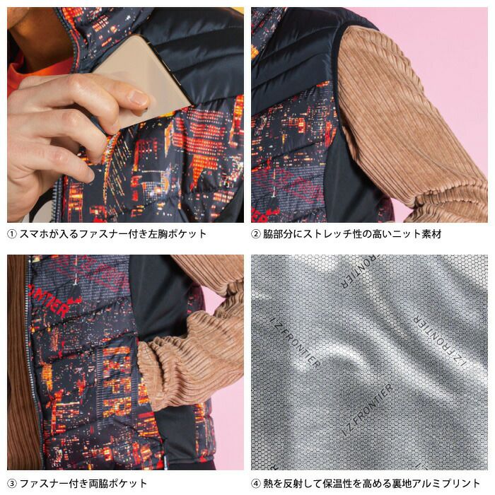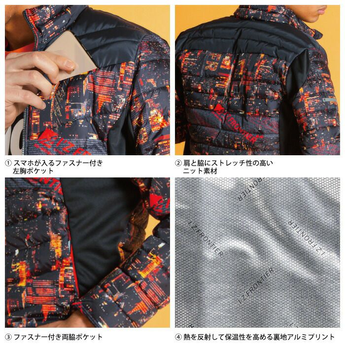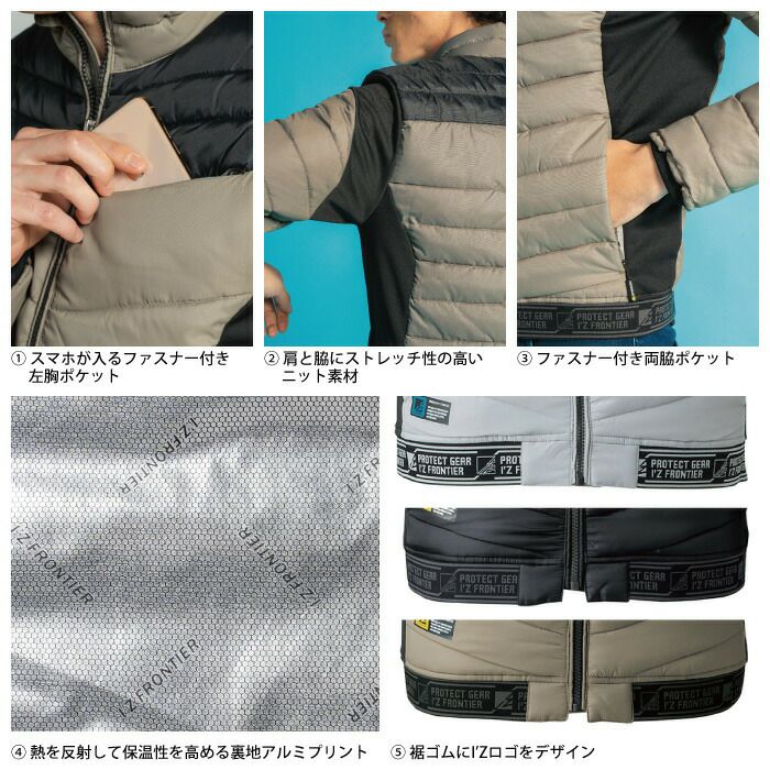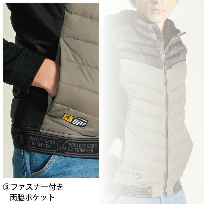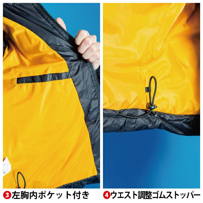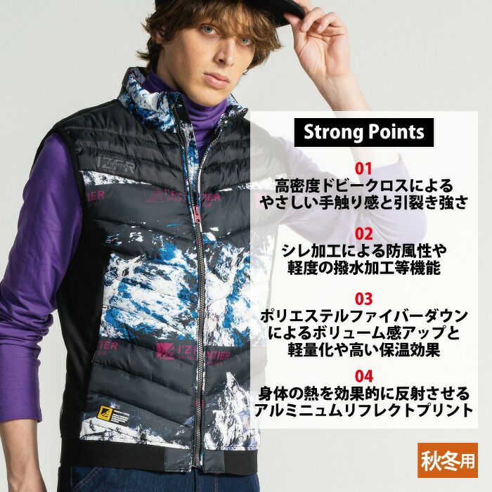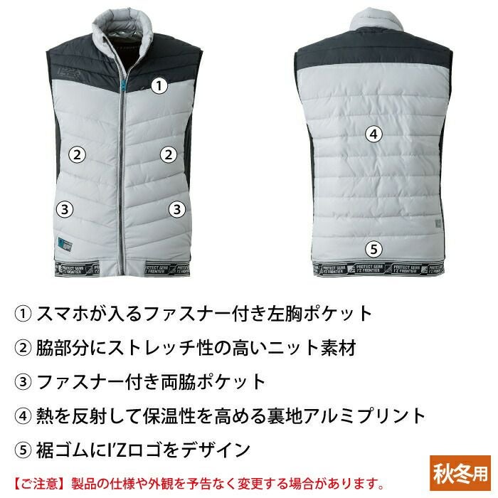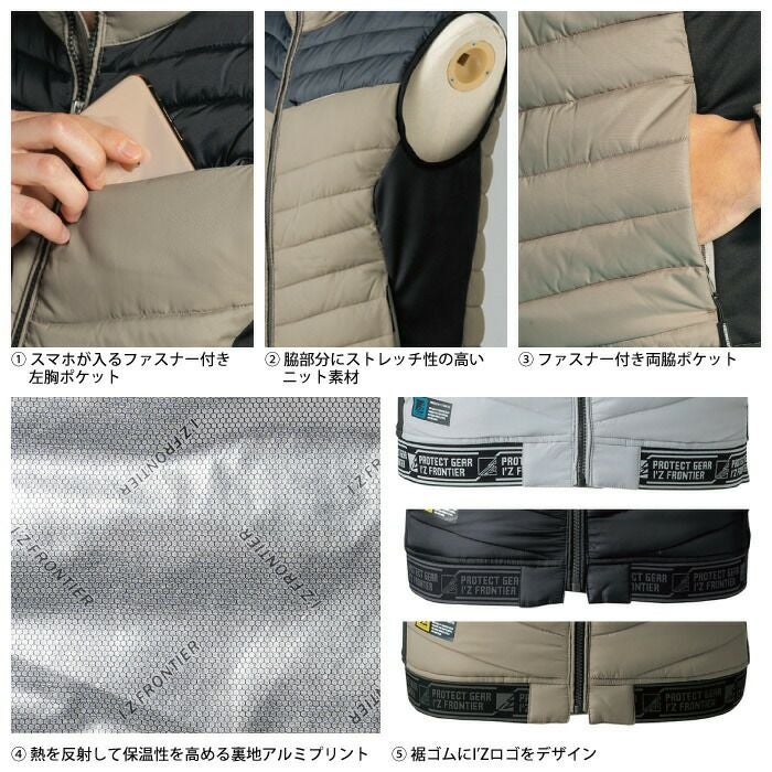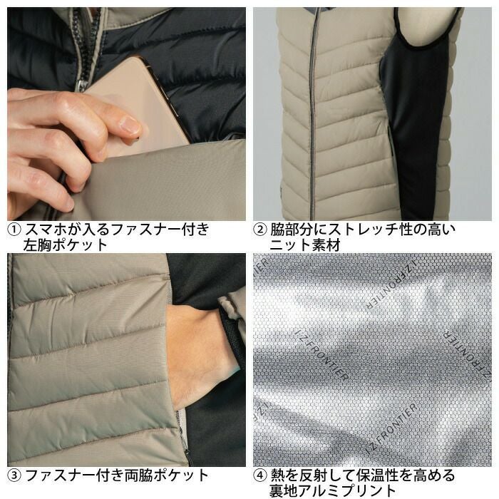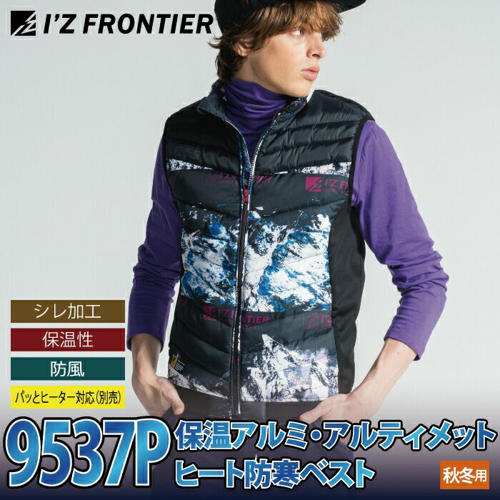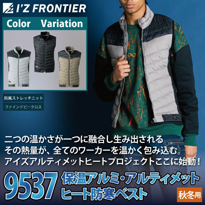ヒーターモジュール対応 ファイバーダウン アイズフロンティア 作業服 9537P 保温アルミアルティメットヒート防寒ベスト S-4L 防寒着 秋冬用