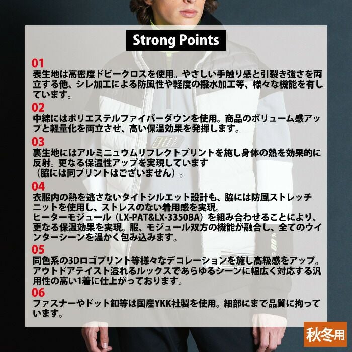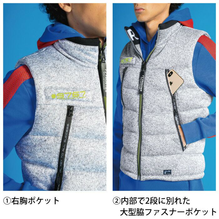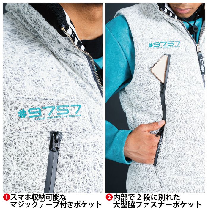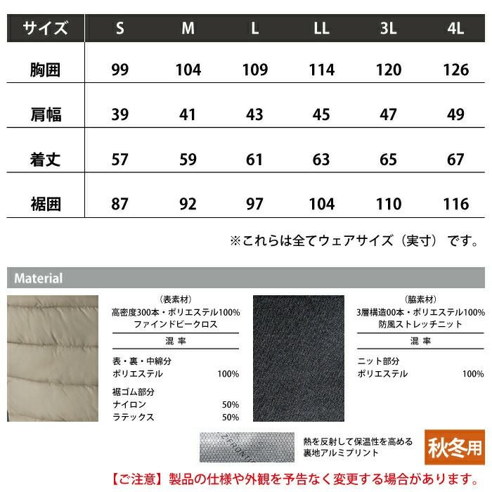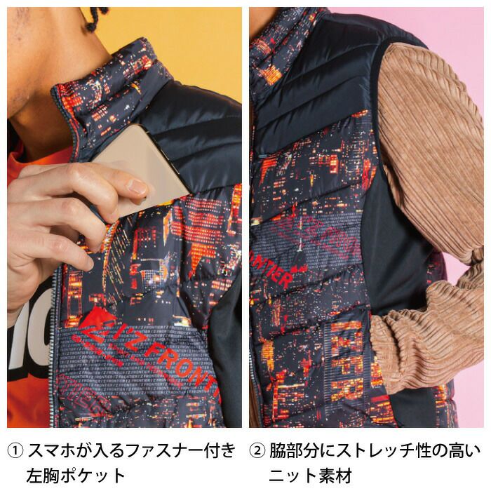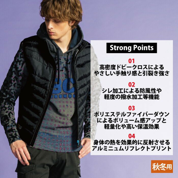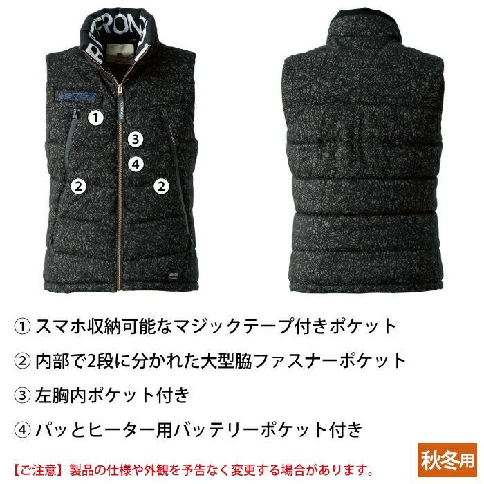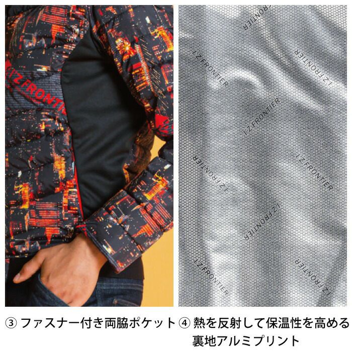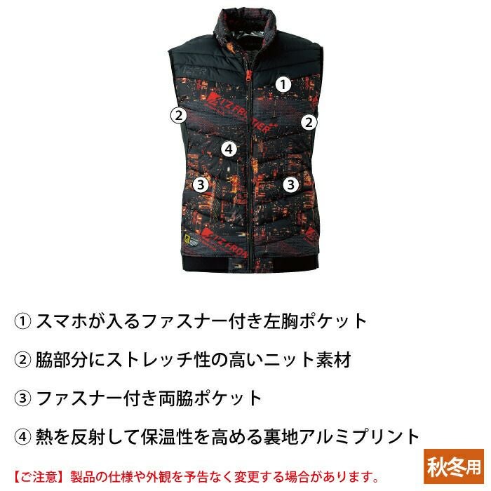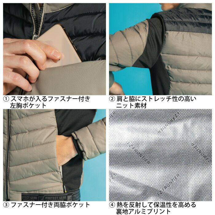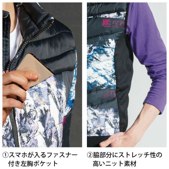 ヒーターモジュール対応 ファイバーダウン アイズフロンティア 作業服 9537P 保温アルミアルティメットヒート防寒ベスト S-4L 防寒着 秋冬用
