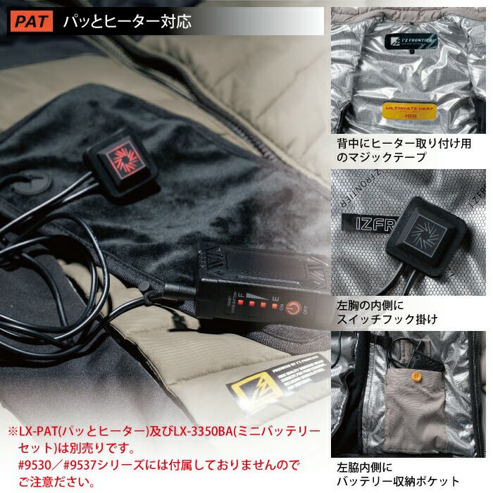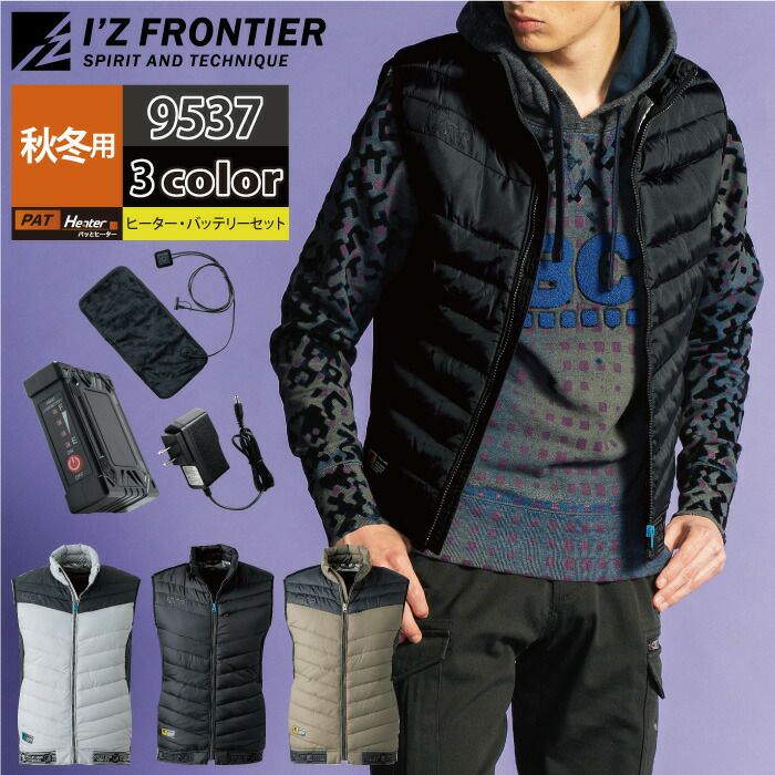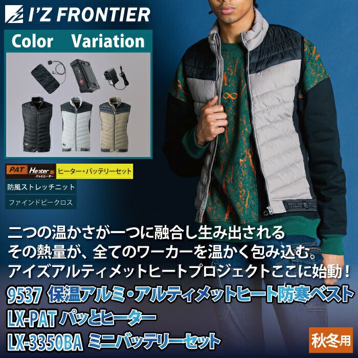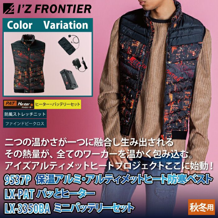 ヒートベスト 秋冬用 アイズフロンティア 作業服 9537setR3 保温アルミアルティメットヒート防寒ベストとヒータとバッテリのセット S