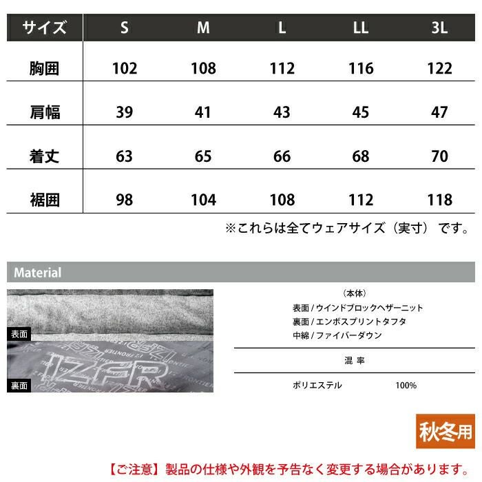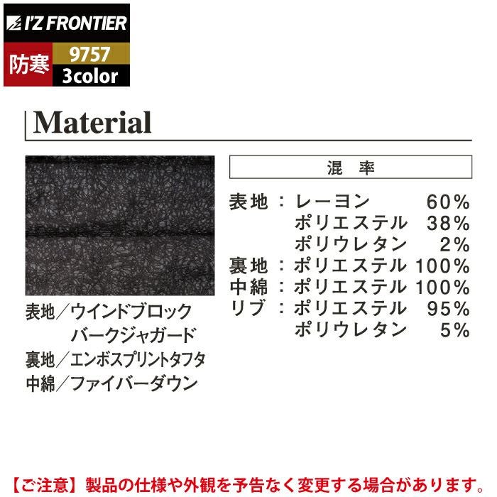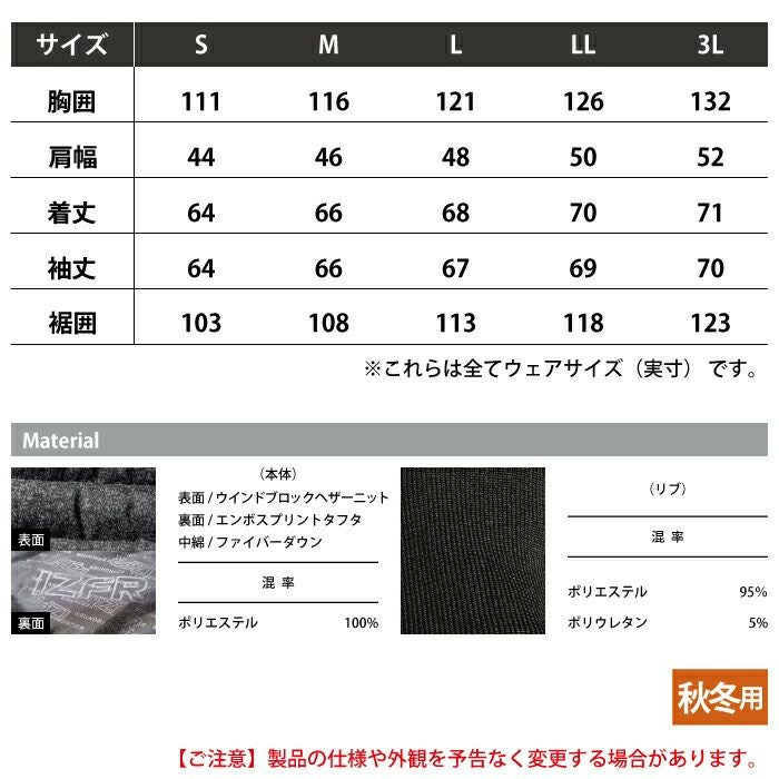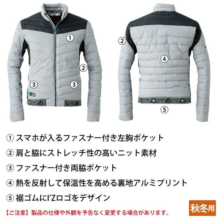 アイズフロンティア 作業服 作業着 作業ズボン アイズフロンティア 作業服 防寒着 9760 ヘザーダウンファイバーダウン防寒ジャケット S-3L 防風 保温 軽量 防寒着 秋冬用