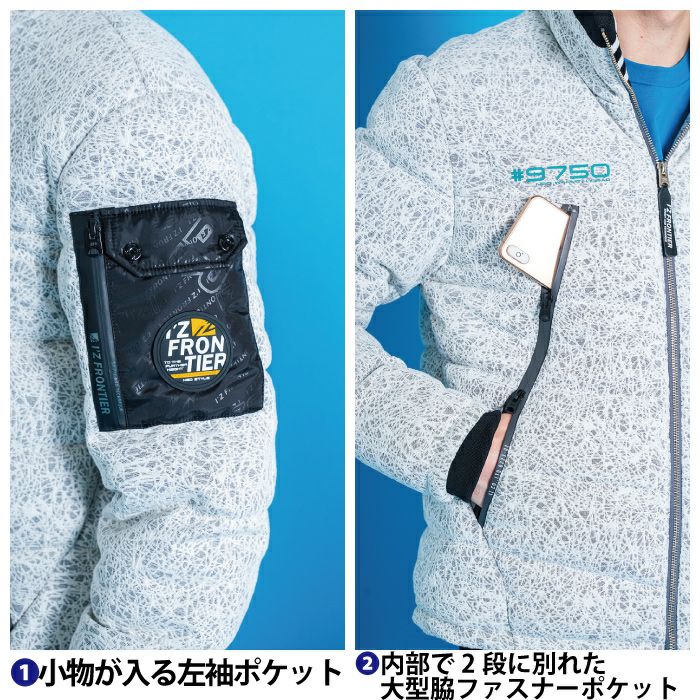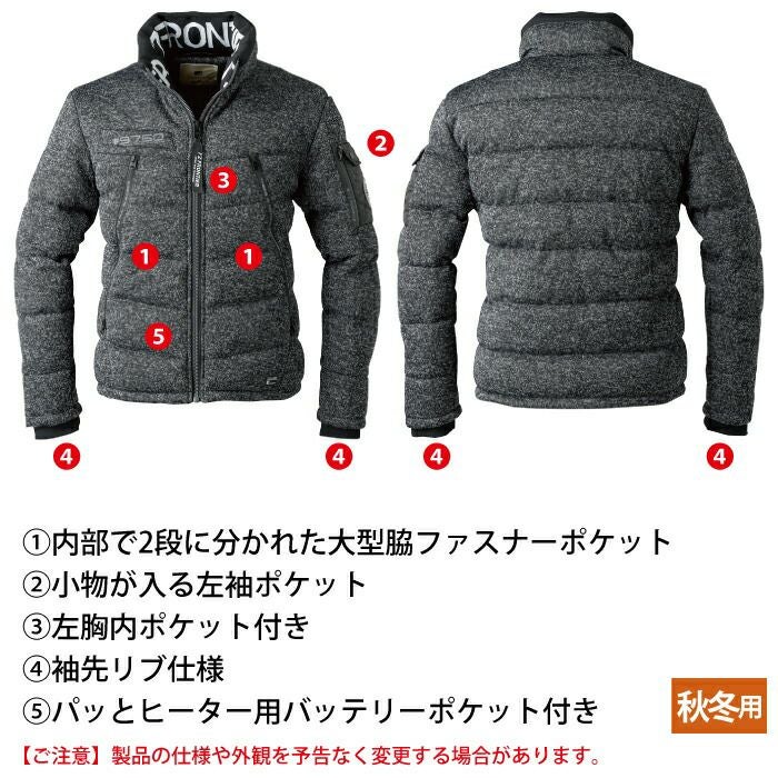 アイズフロンティア 作業服 作業着 作業ズボン アイズフロンティア 作業服 防寒着 9750 バークジャガードファイバーダウン防寒ジャケット S-3L ヒートベスト 秋冬用