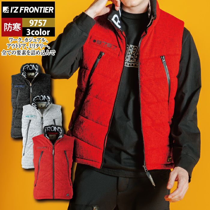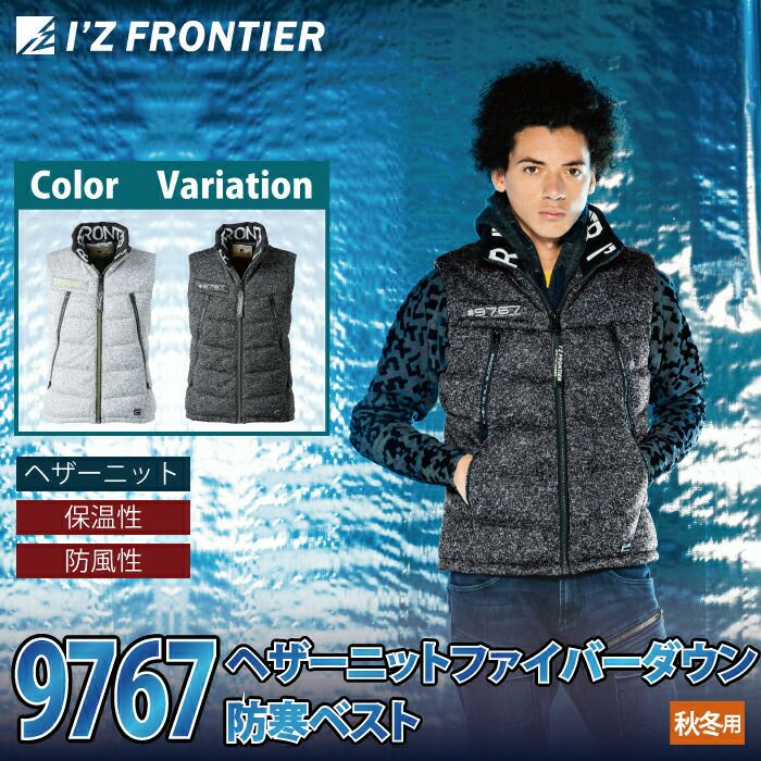 アイズフロンティア 作業服 作業着 作業ズボン アイズフロンティア 作業服 防寒着 9767 ヘザーダウンファイバーダウン防寒ベスト S-3LL 防風 保温 軽量 防寒着 秋冬用