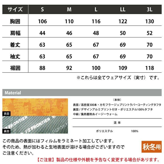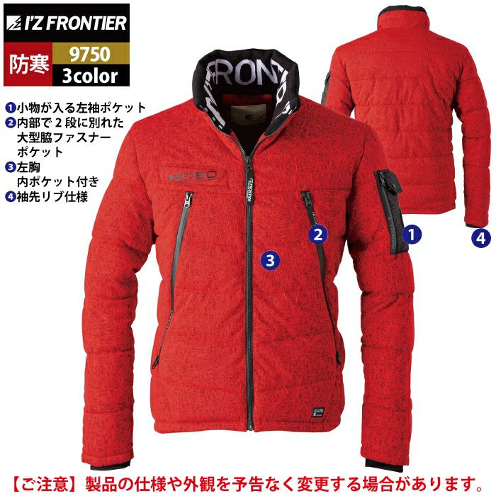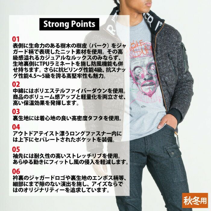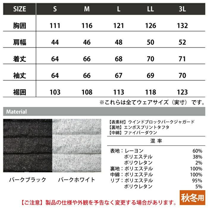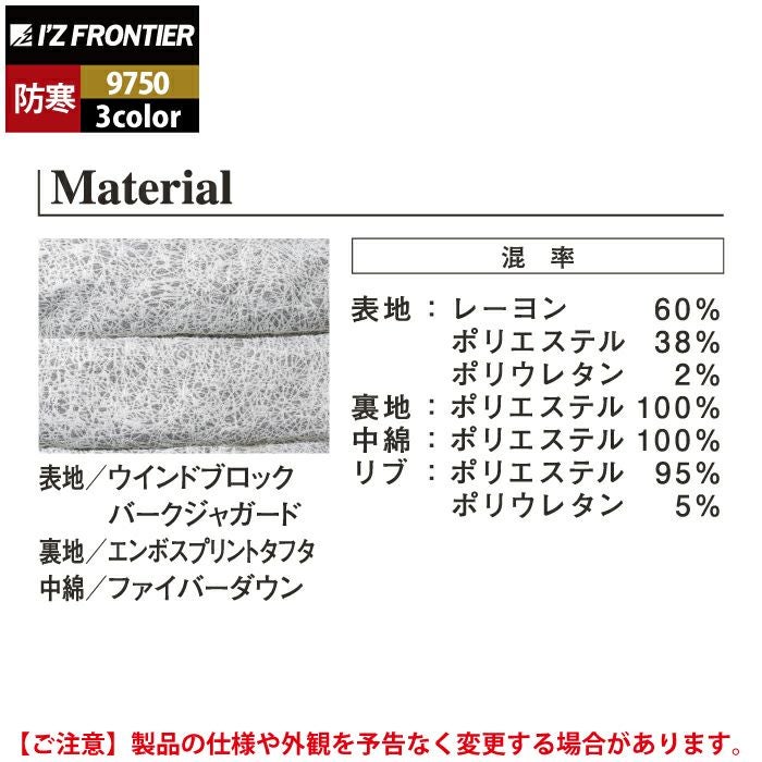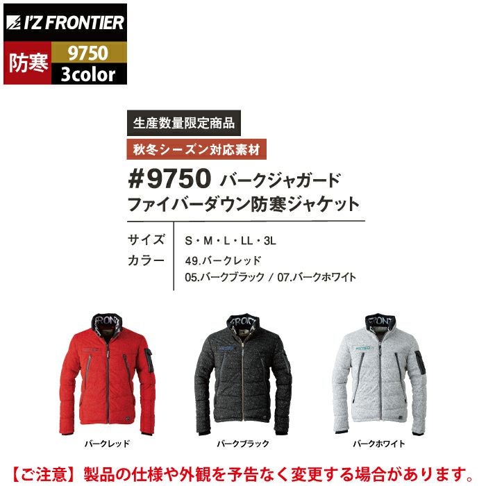 アイズフロンティア 作業服 作業着 作業ズボン アイズフロンティア 作業服 防寒着 9750 バークジャガードファイバーダウン防寒ジャケット S-3L 秋冬用