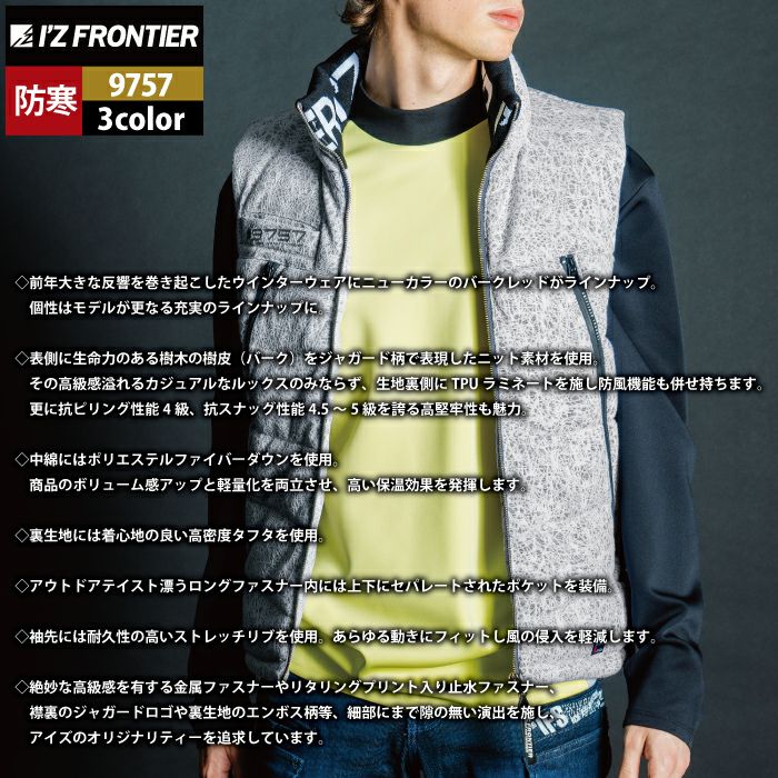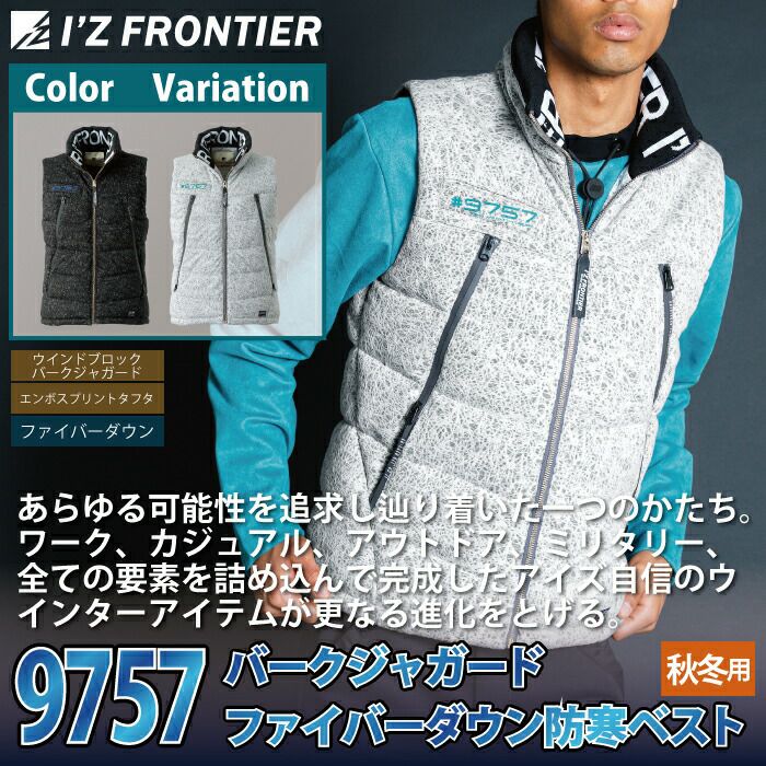 アイズフロンティア 作業服 作業着 作業ズボン アイズフロンティア 作業服 防寒着 9757 バークジャガードファイバーダウン防寒ベスト S-3L 秋冬用