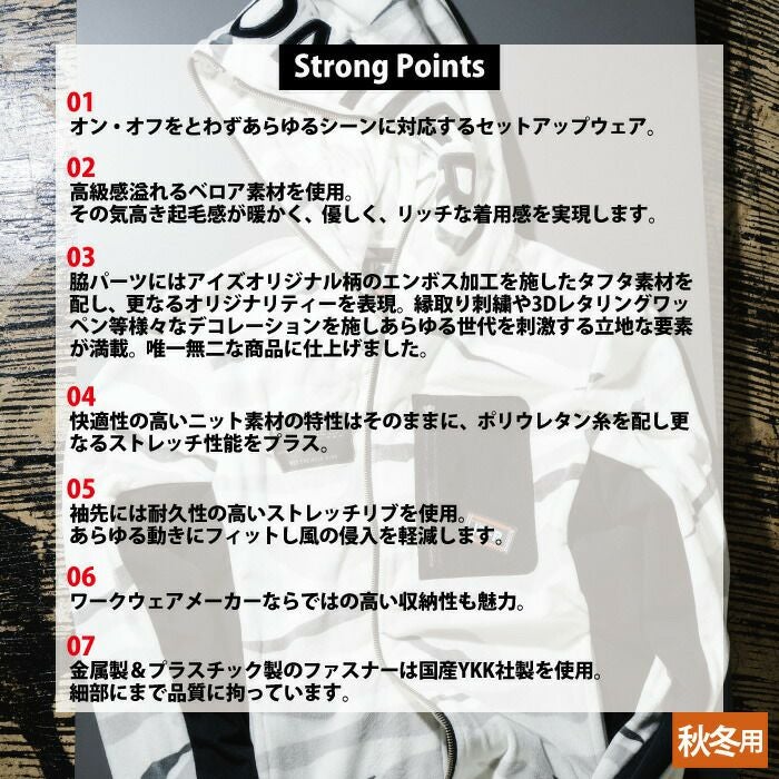 アイズフロンティア 作業服 作業着 作業ズボン アイズフロンティア 作業服 防寒着 9960P ストレッチベロアフーディッドジャケット S-3L 作業服 保温 防風 高級感 ストレッチ 秋冬