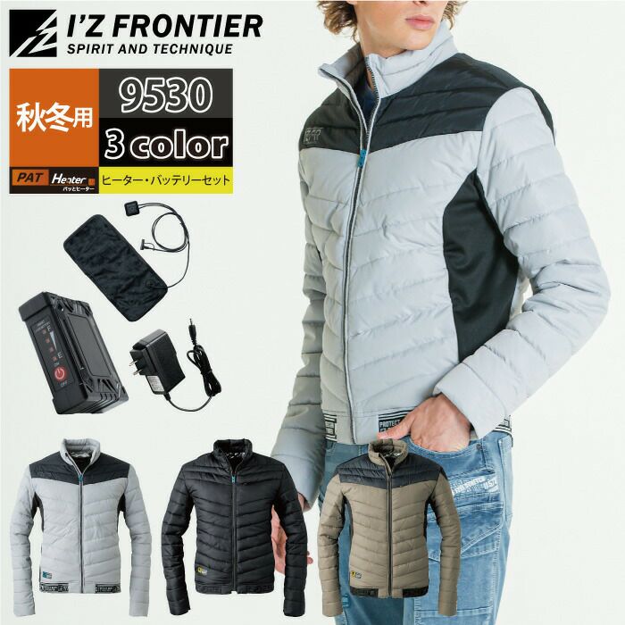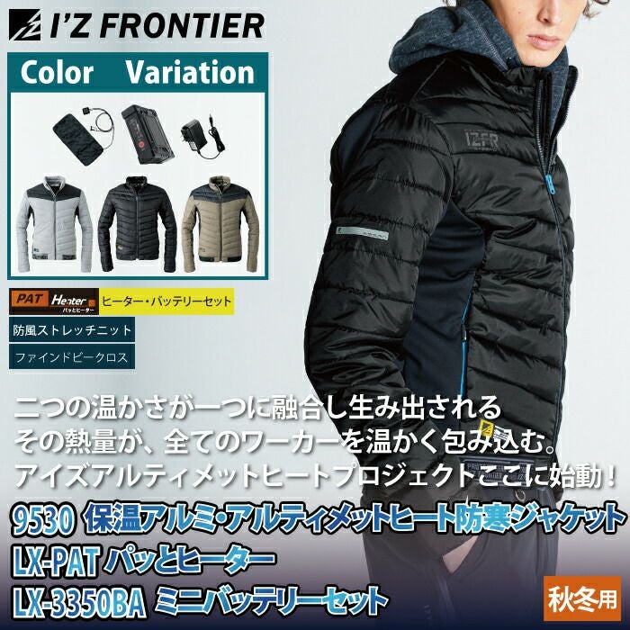 秋冬用 アイズフロンティア 作業服 9530setR3 保温アルミアルティメットヒート防寒ジャケットとヒータとバッテリのセット S