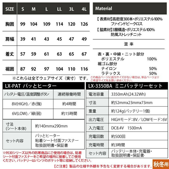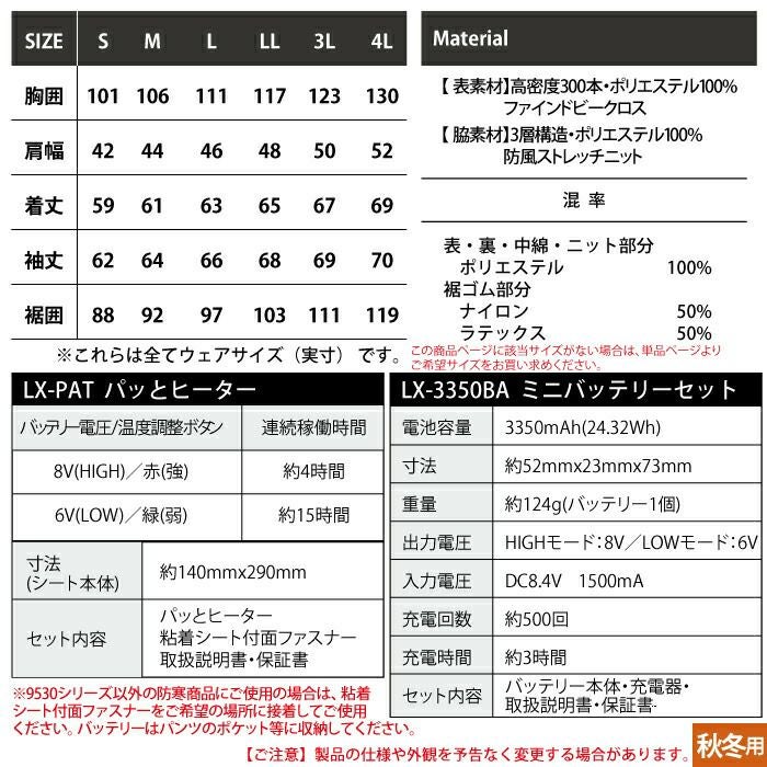 秋冬用 アイズフロンティア 作業服 9350PsetR3 保温アルミアルティメットヒート防寒ジャケットとヒータとバッテリのセット S
