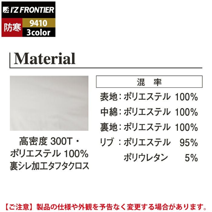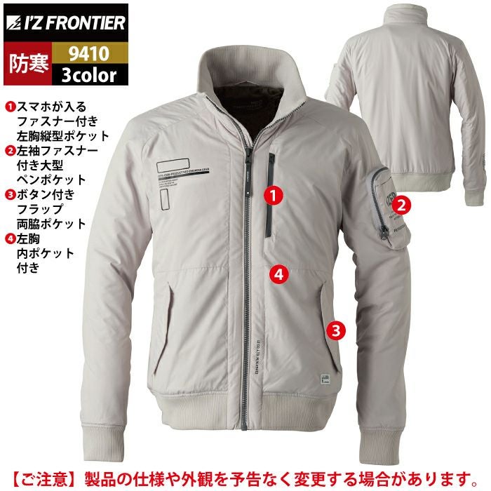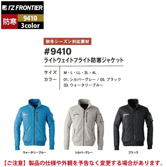 アイズフロンティア 作業服 作業着 作業ズボン アイズフロンティア 作業服 防寒着 9410 ライトウェイトフライト防寒ジャケット M-4L 秋冬用