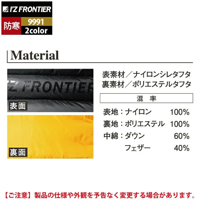 アイズフロンティア 作業服 作業着 作業ズボン アイズフロンティア 作業服 防寒着 9991 ダウンジャケット S-3L 秋冬用 秋冬用