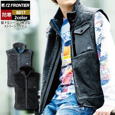 アイズフロンティア 作業服 8817 ハイブリットウインドブロックボアフリースベスト S-4L 秋冬用
