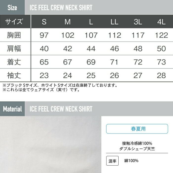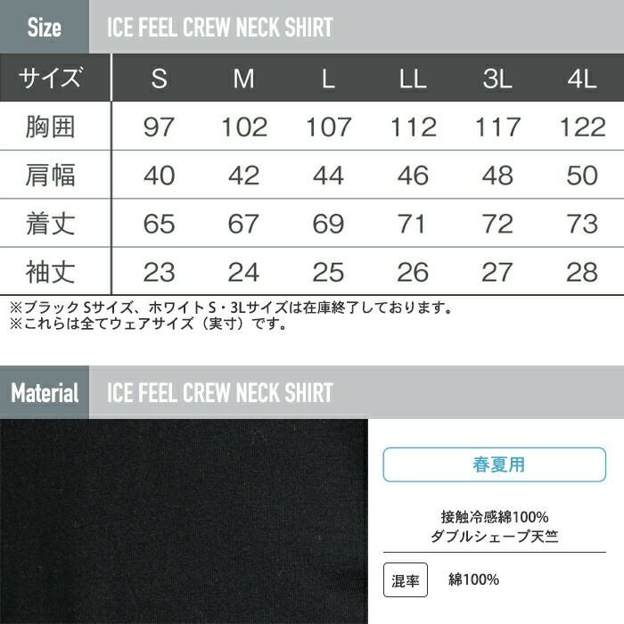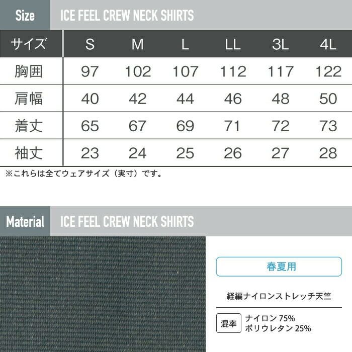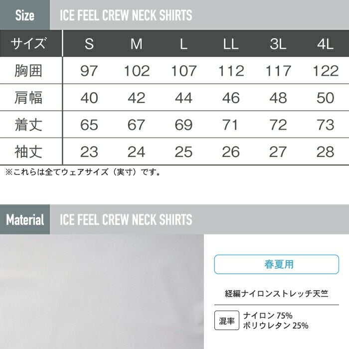 アイズフロンティア 作業服 作業着 作業ズボン アイズフロンティア 作業服 031 接触冷感ナイロン半袖クルーネックシャツ S-3L 春夏用