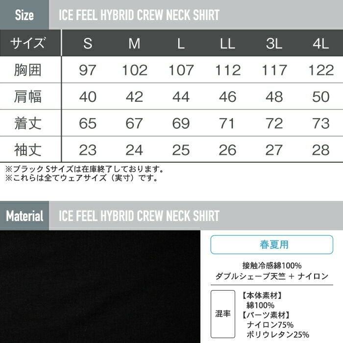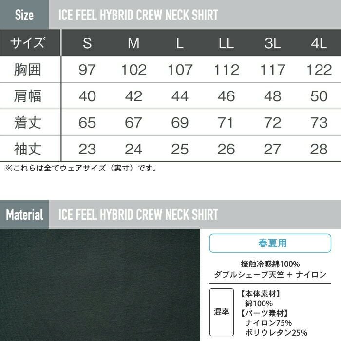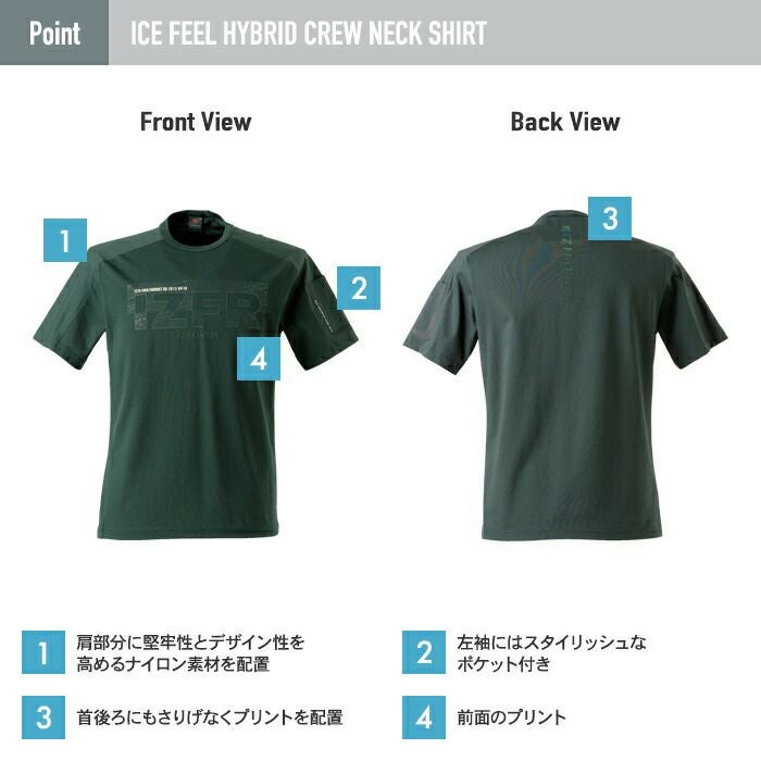 アイズフロンティア 作業服 作業着 作業ズボン アイズフロンティア 作業服 014 接触冷感ハイブリッド半袖クルーネックシャツ S-3L 春夏用