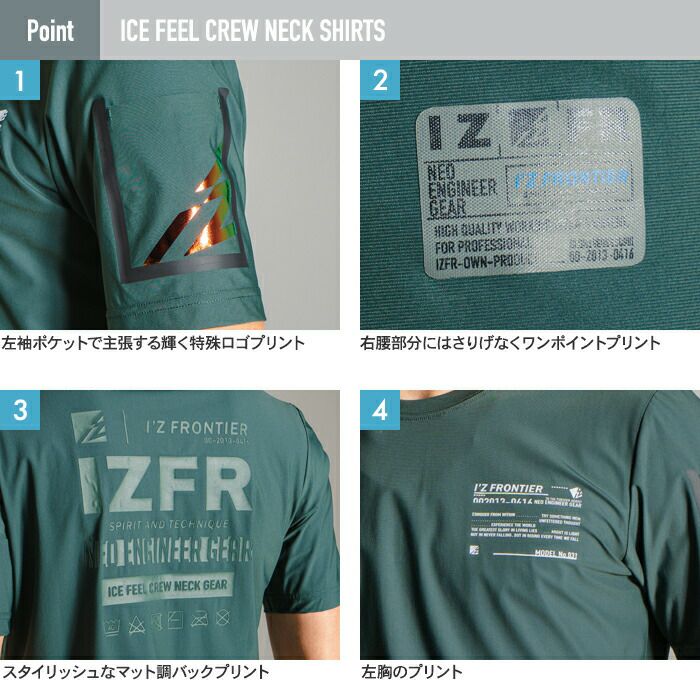 アイズフロンティア 作業服 作業着 作業ズボン アイズフロンティア 作業服 012 接触冷感半袖クルーネックシャツ S-3L 春夏用