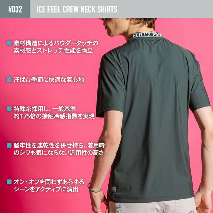アイズフロンティア 作業服 作業着 作業ズボン アイズフロンティア 作業服 032 接触冷感ナイロン半袖クルーネックシャツ S-3L 春夏用