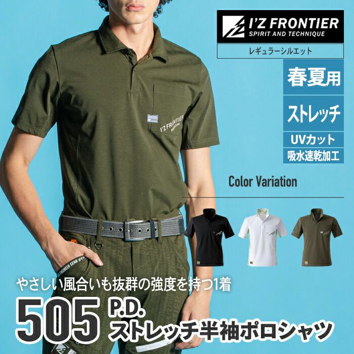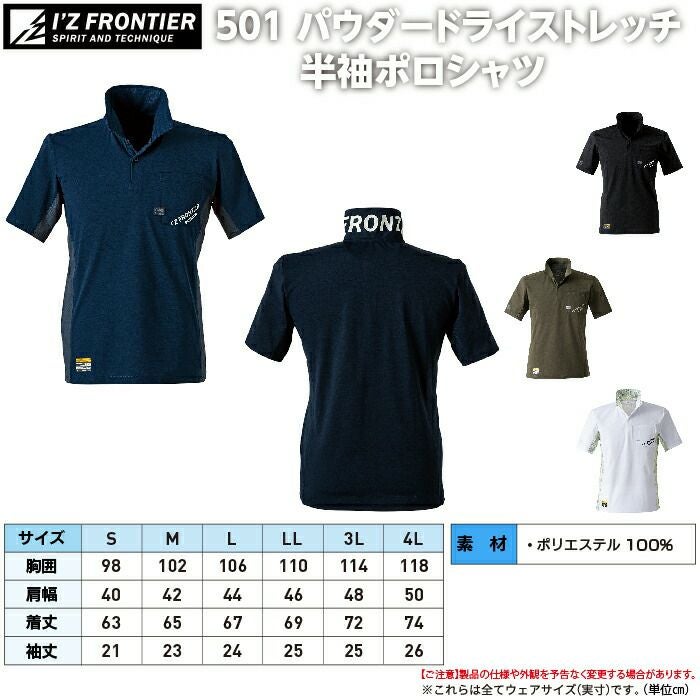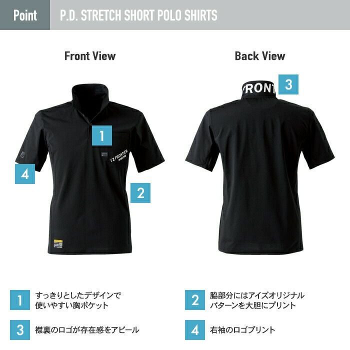 アイズフロンティア 作業服 作業着 作業ズボン アイズフロンティア 作業服 インナー 505 パウダードライストレッチ半袖ポロシャツ S-4L 作業着 おしゃれ 春夏