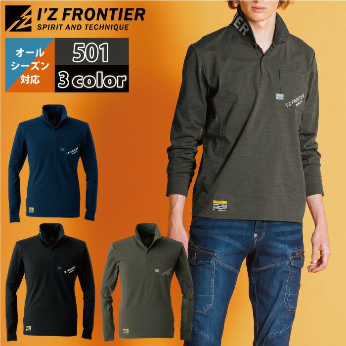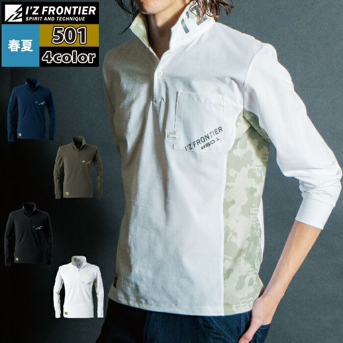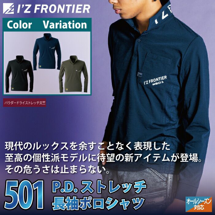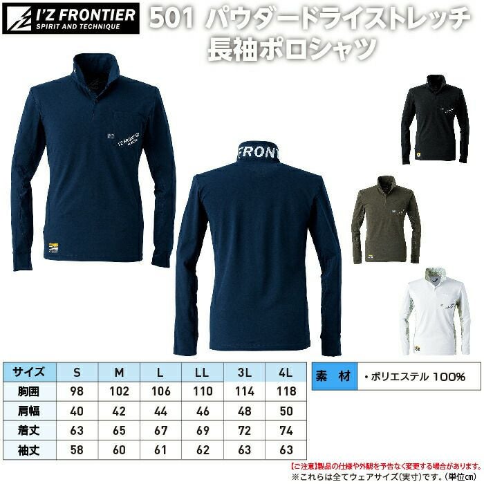 アイズフロンティア 作業服 作業着 作業ズボン アイズフロンティア 作業服 インナー 501 パウダードライストレッチ長袖ポロシャツ S-4L 作業着 おしゃれ 春夏