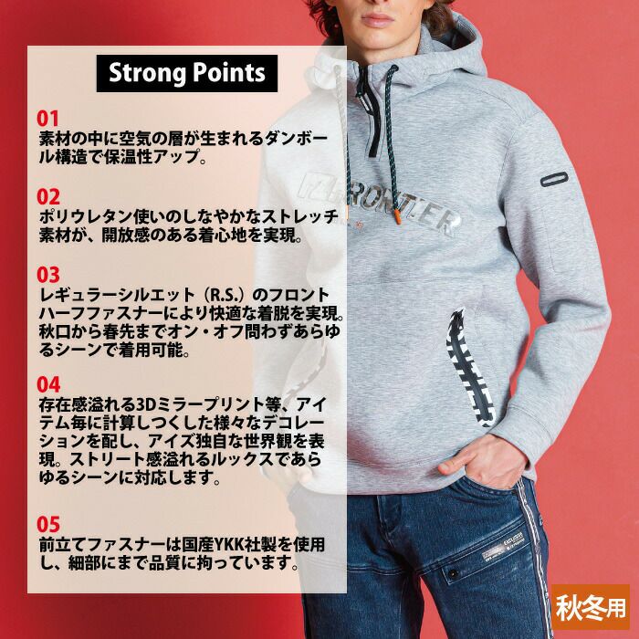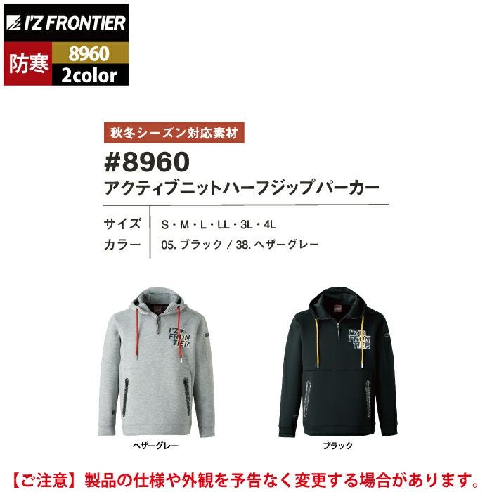アイズフロンティア 作業服 作業着 作業ズボン アイズフロンティア 作業服 8960 アクティブニットハーフジップパーカー S-4L 秋冬用