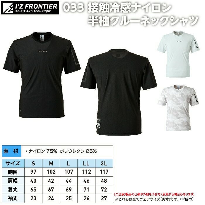 アイズフロンティア 作業服 作業着 作業ズボン アイズフロンティア 作業服 インナー 033 接触冷感ナイロン半袖クルーネックシャツ S-3L 作業着 おしゃれ 春夏