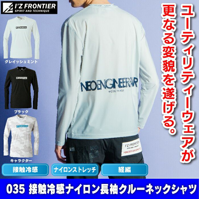 アイズフロンティア 作業服 作業着 作業ズボン アイズフロンティア 作業服 インナー 035 接触冷感ナイロン長袖クルーネックシャツ S-3L 作業着 おしゃれ 春夏