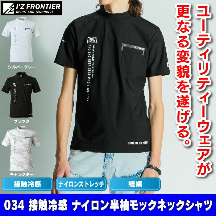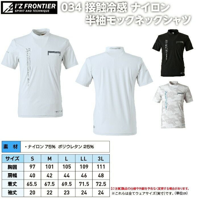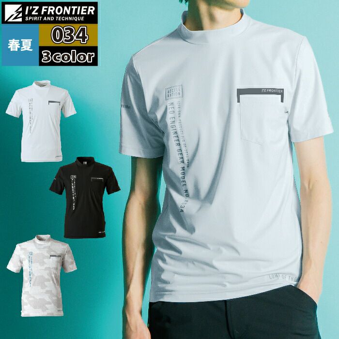 アイズフロンティア 作業服 作業着 作業ズボン アイズフロンティア 作業服 インナー 034 接触冷感ナイロン半袖モックネックシャツ S-3L 作業着 おしゃれ 春夏