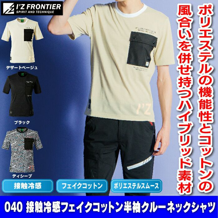 アイズフロンティア 作業服 作業着 作業ズボン アイズフロンティア 作業服 インナー 040 接触冷感フェイクコットン半袖クルーネックシャツ S-3L 作業着 おしゃれ 春夏