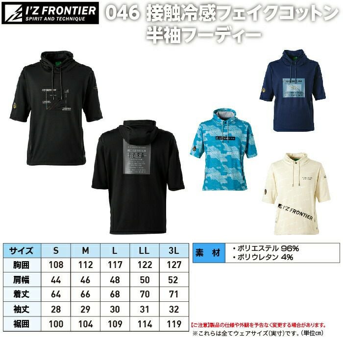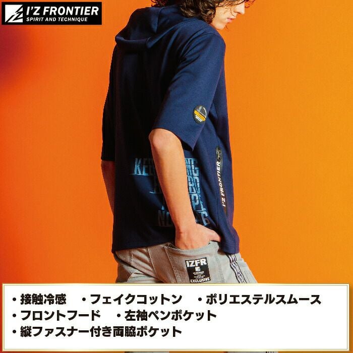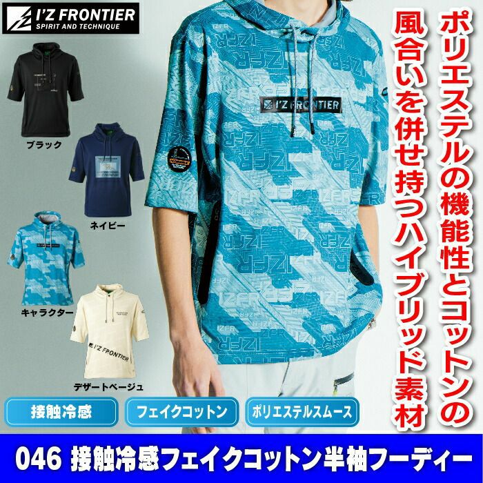 アイズフロンティア 作業服 作業着 作業ズボン アイズフロンティア 作業服 インナー 046 接触冷感フェイクコットン半袖フーディー S-3L 作業着 おしゃれ 春夏