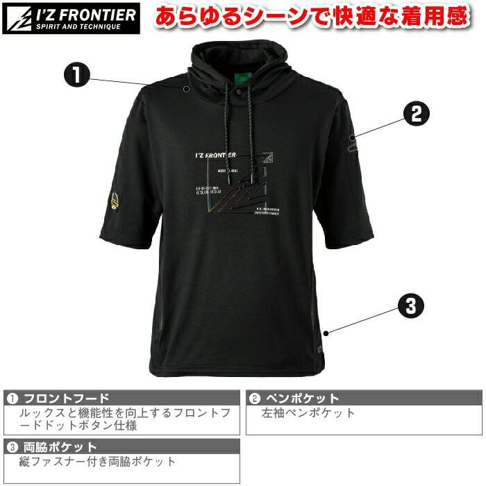 アイズフロンティア 作業服 作業着 作業ズボン アイズフロンティア 作業服 作業着 047 アイスフィールDJストレッチ半袖フーディー S-3L 春夏用