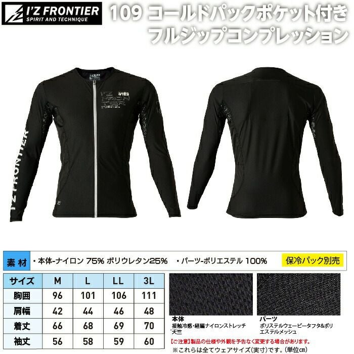アイズフロンティア 作業服 作業着 作業ズボン アイズフロンティア 作業服 インナー 109 コールドパックポケット付きフルジップコンプレッション M-3L 作業着 おしゃれ 春夏
