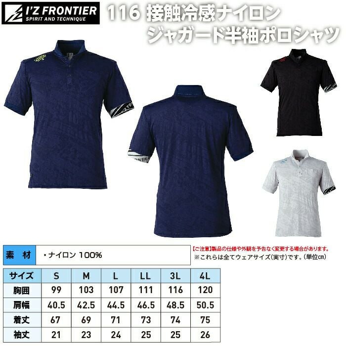 アイズフロンティア 作業服 作業着 作業ズボン アイズフロンティア 作業服 インナー 116 接触冷感ナイロンジャガード半袖ポロシャツ S-4L 作業着 おしゃれ 春夏