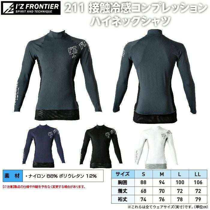 アイズフロンティア 作業服 作業着 作業ズボン アイズフロンティア 作業服 インナー 211 接触冷感コンプレッションハイネックシャツ S-XL 作業着 おしゃれ 春夏