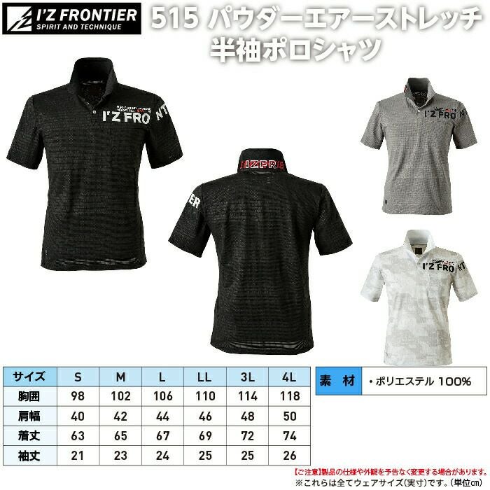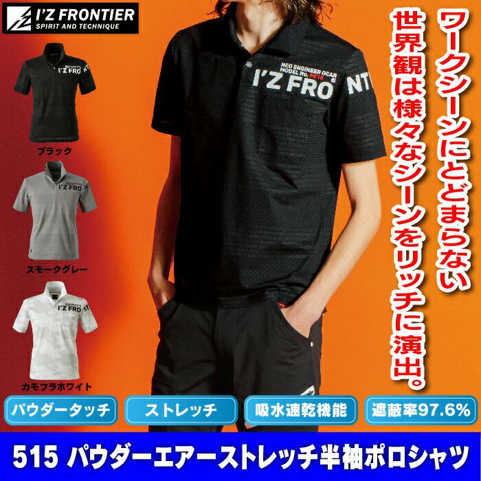 アイズフロンティア 作業服 作業着 作業ズボン アイズフロンティア 作業服 インナー 515 パウダーエアーストレッチ半袖ポロシャツ S-4L 作業着 おしゃれ 春夏