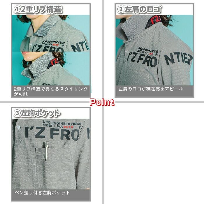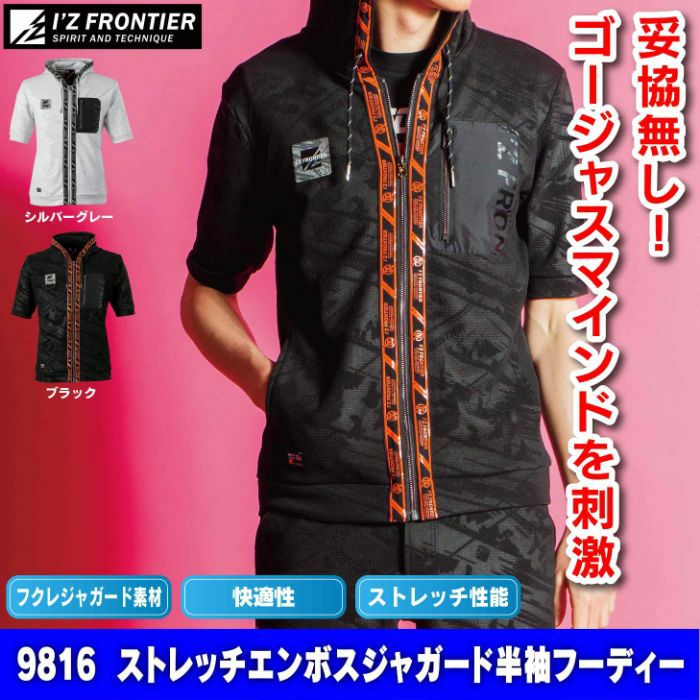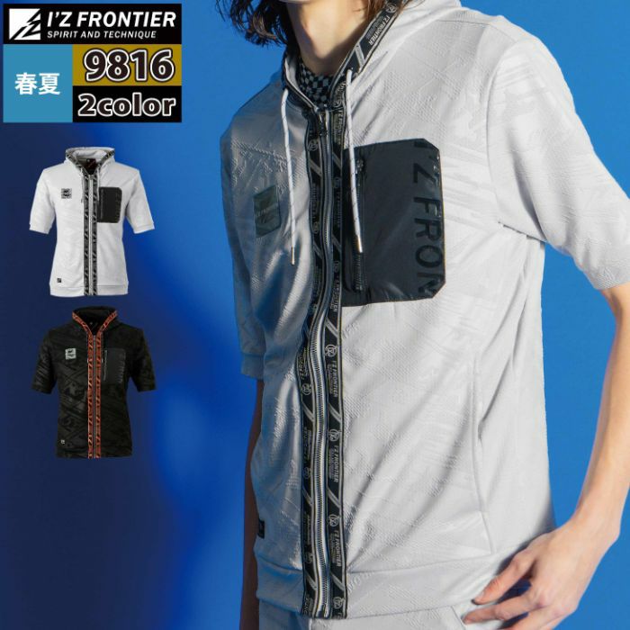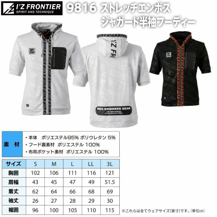 アイズフロンティア 作業服 作業着 作業ズボン アイズフロンティア 作業服 9816 ストレッチエンボスジャガード半袖フーディー S-3L 作業着 おしゃれ 春夏