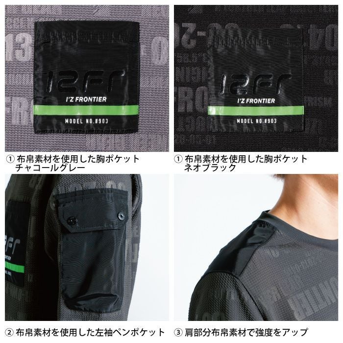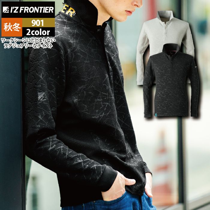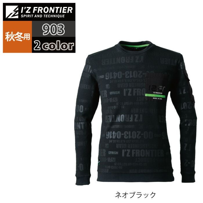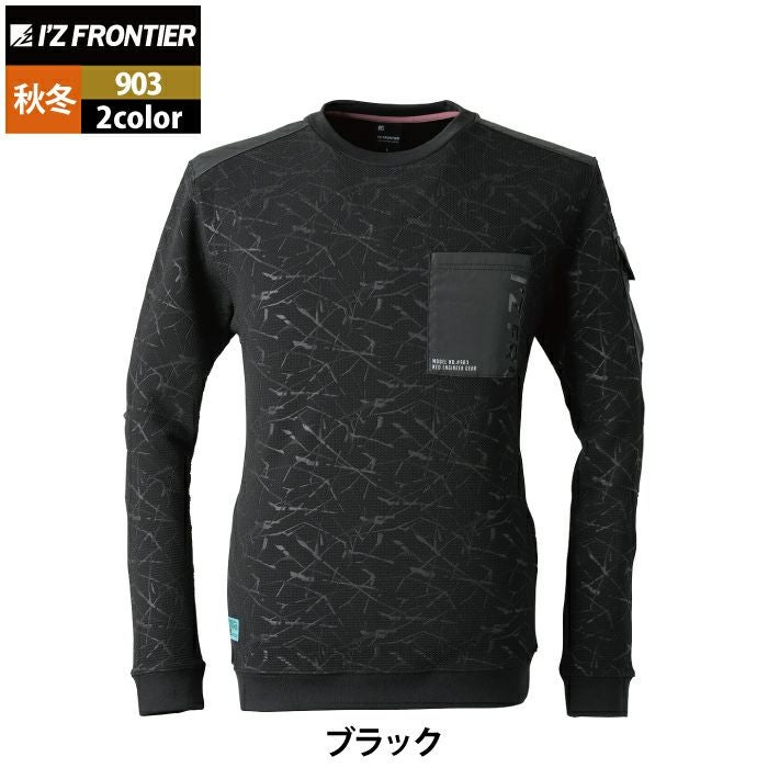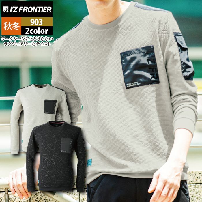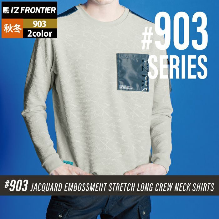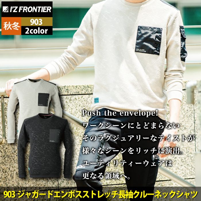アイズフロンティア 作業服 作業着 作業ズボン アイズフロンティア 作業服 903 ジャガードエンボスストレッチ長袖クルーネックシャツ S-4L 秋冬用 作業着 おしゃれ
