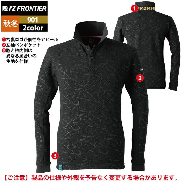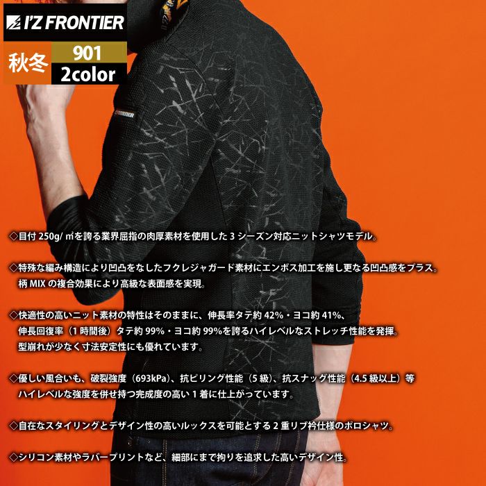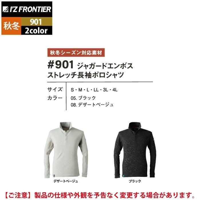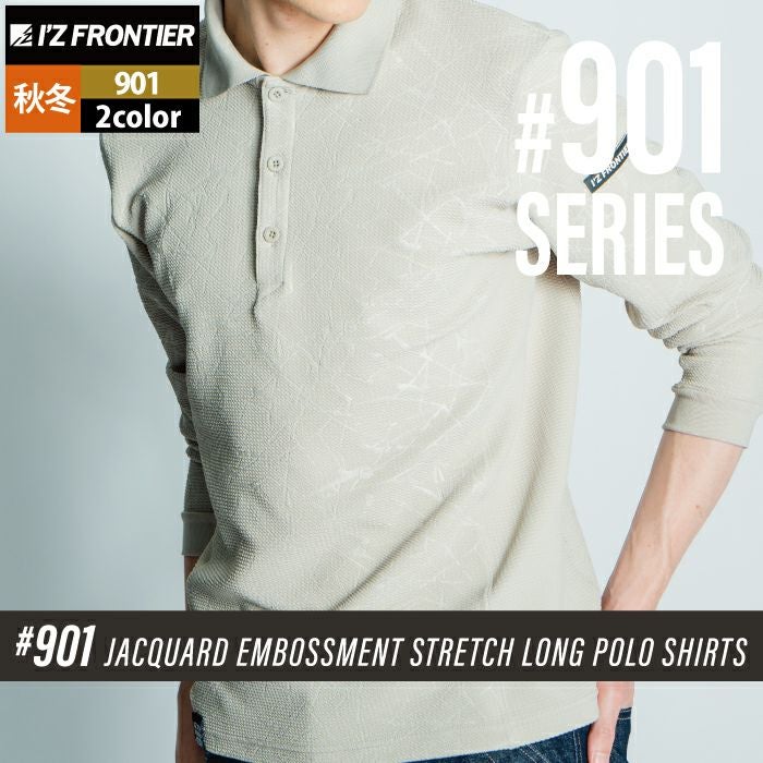 アイズフロンティア 作業服 作業着 作業ズボン アイズフロンティア 作業服 901 ジャガードエンボスストレッチ長袖ポロシャツ S-4L 秋冬用