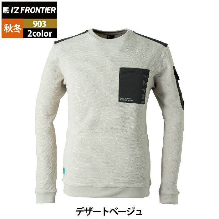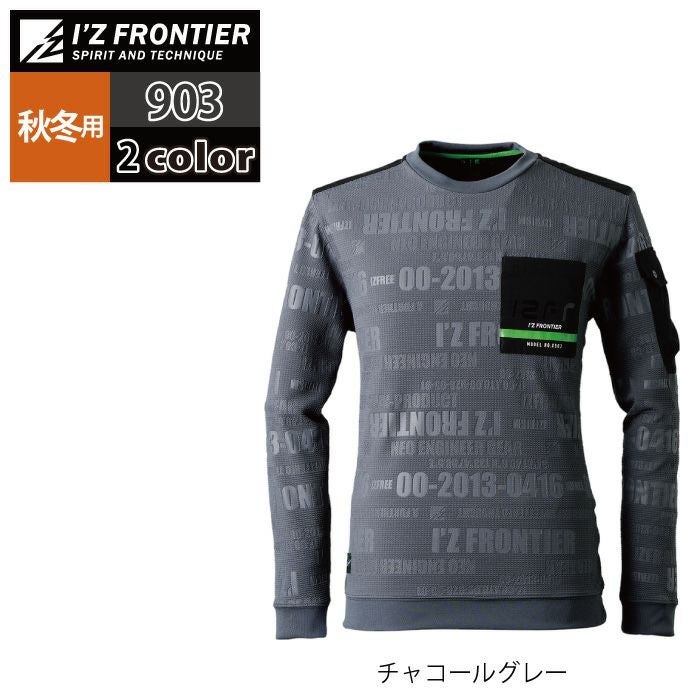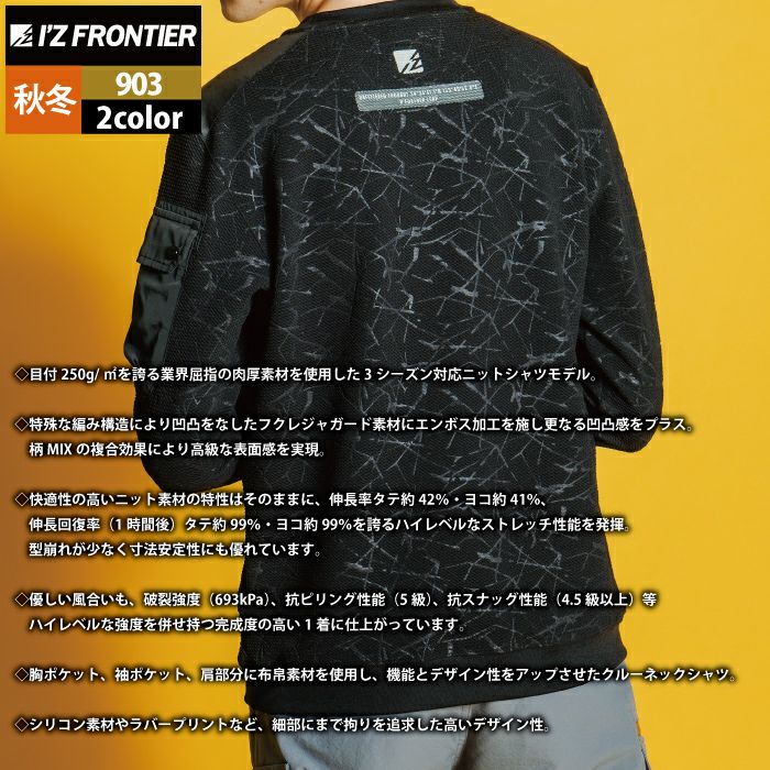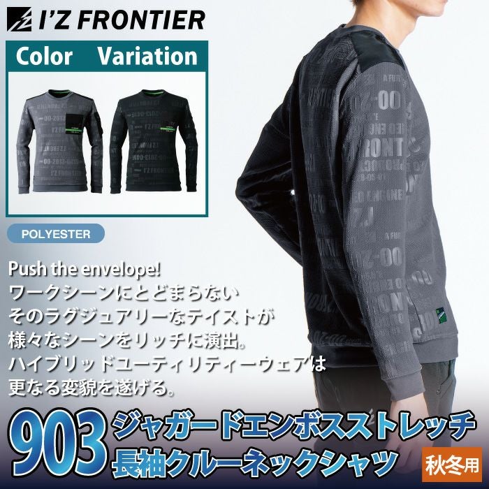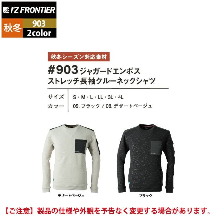 アイズフロンティア 作業服 作業着 作業ズボン アイズフロンティア 作業服 903 ジャガードエンボスストレッチ長袖クルーネックシャツ S-4L 秋冬用