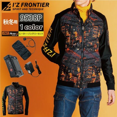 秋冬用 アイズフロンティア 作業服 9538PsetR3 保温アルミアルティメットヒートHBハイブリッド防風ジャケットとヒータとバッテリのセット M