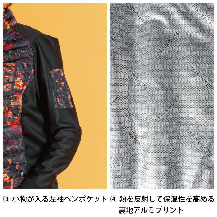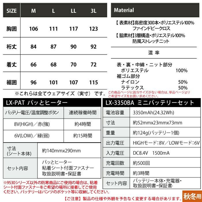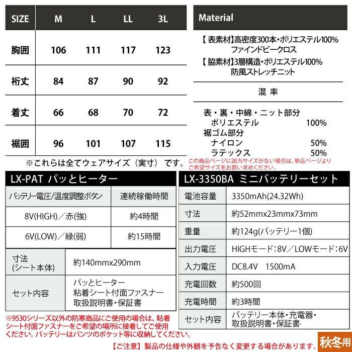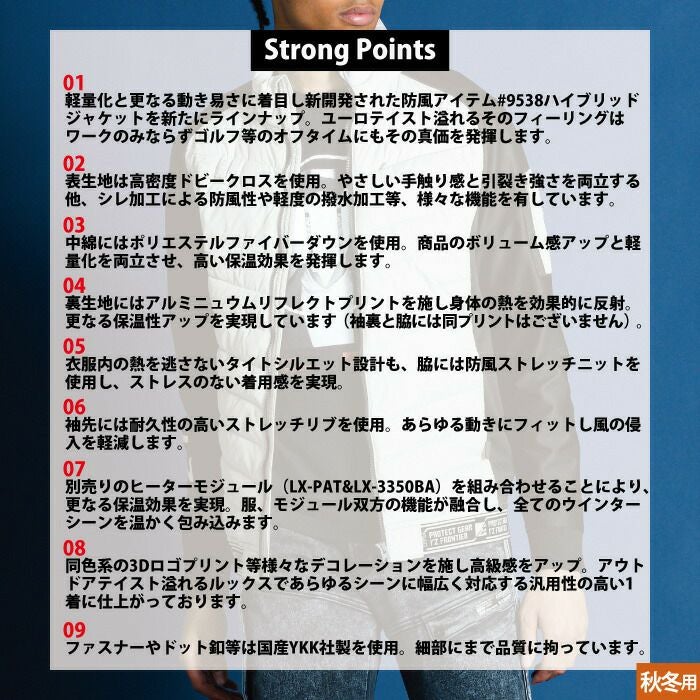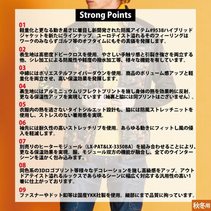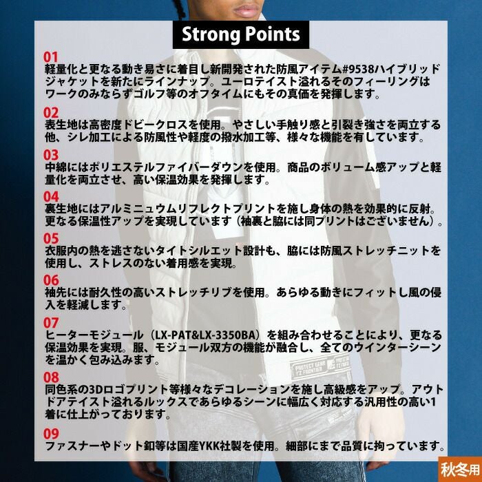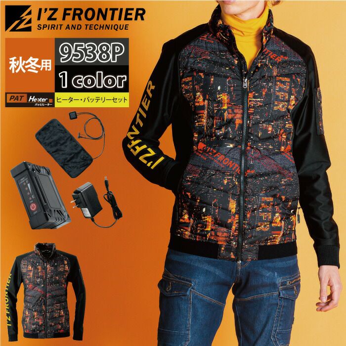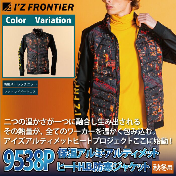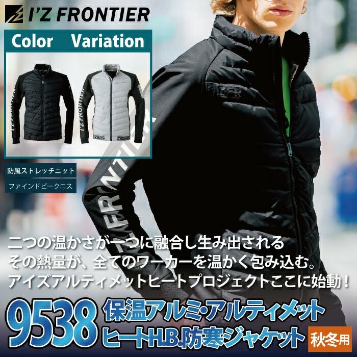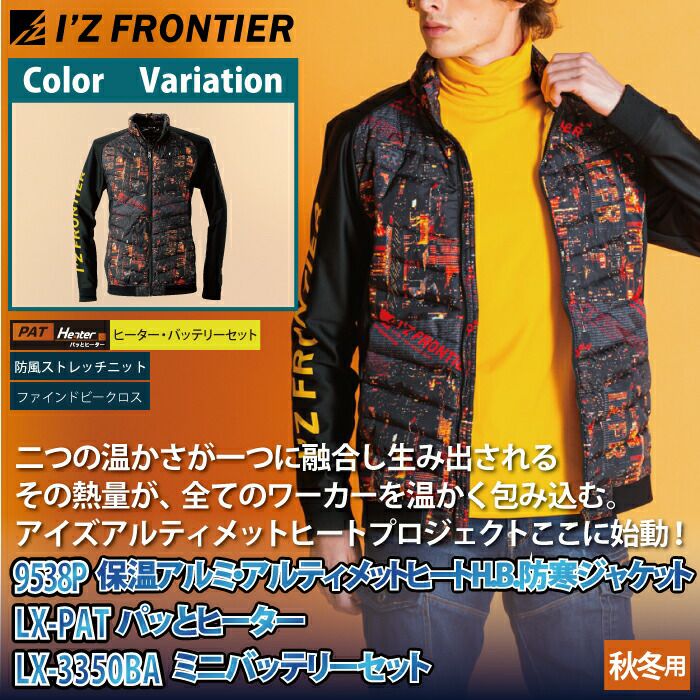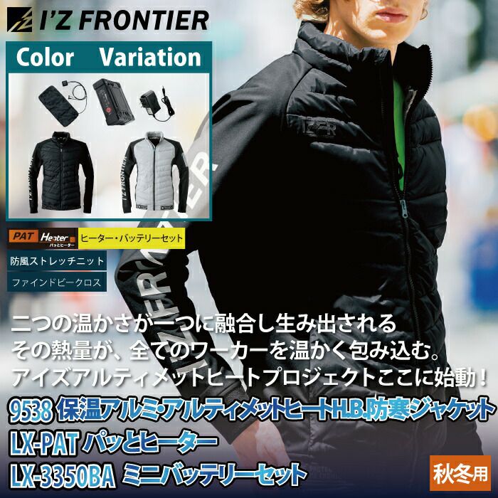 秋冬用 アイズフロンティア 作業服 9538setR3 保温アルミアルティメットヒートHBハイブリッド防風ジャケットとヒータとバッテリのセット M