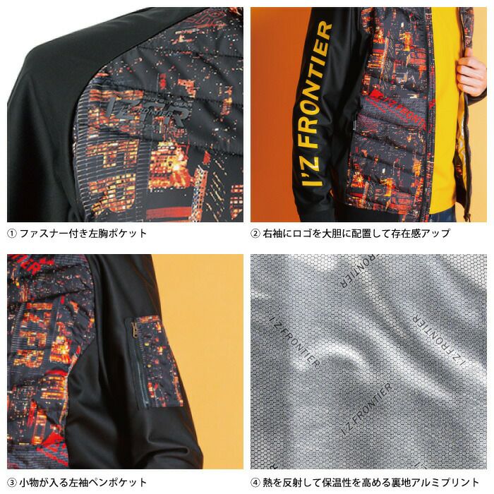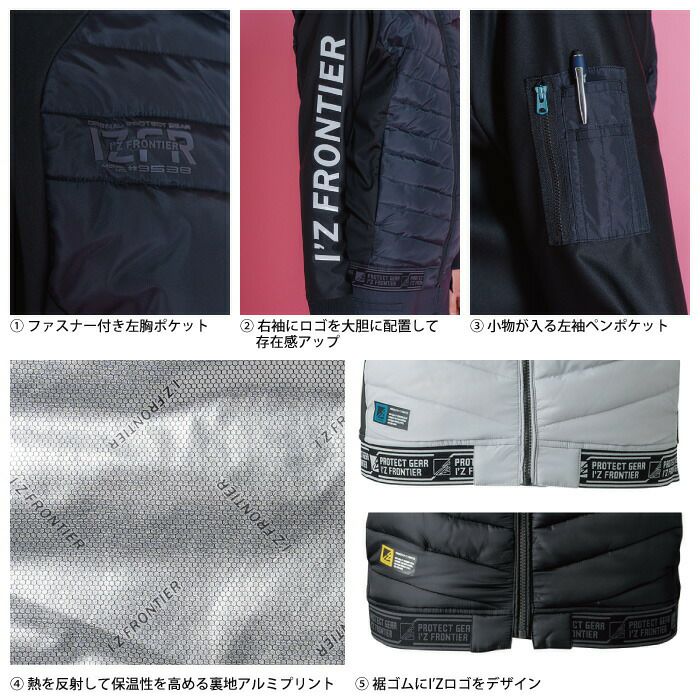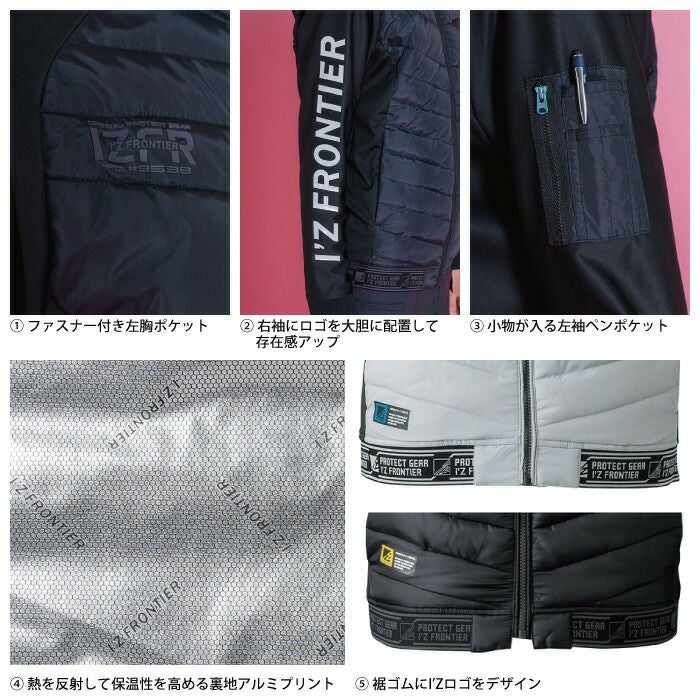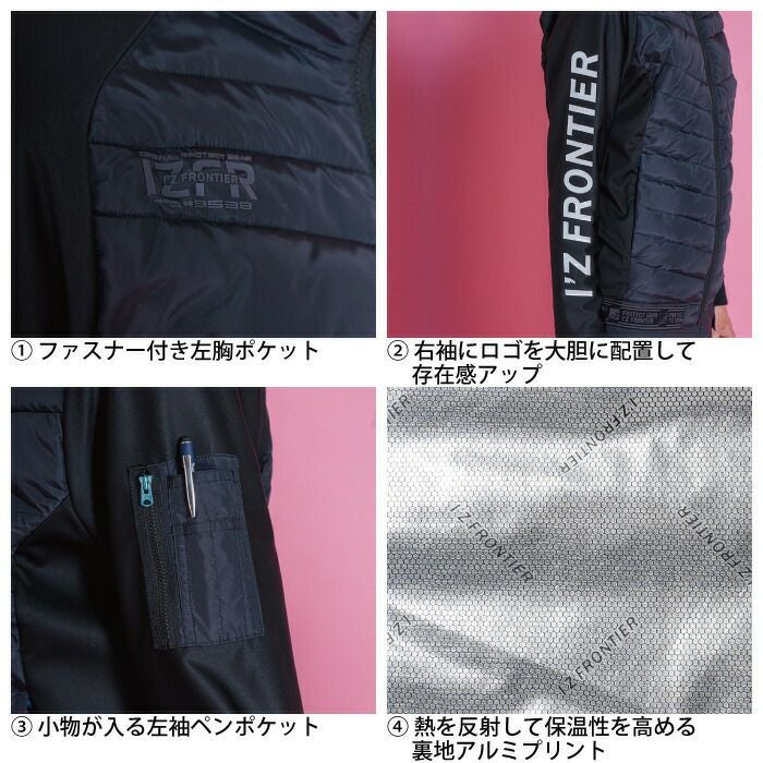 アイズフロンティア 作業服 作業着 作業ズボン アイズフロンティア 作業服 防寒着 9538 保温アルミアルティメットヒートHBハイブリッド防風ジャケット M-3L ヒートベスト 秋冬用