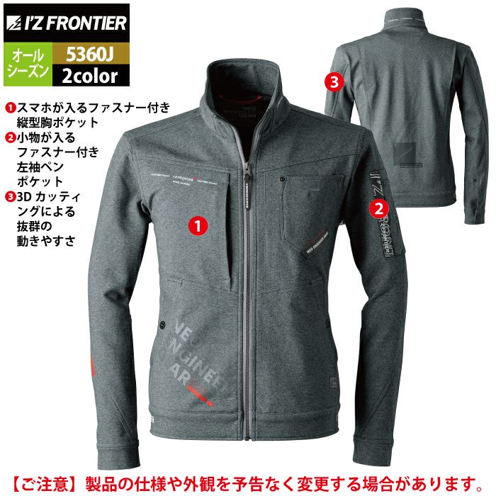 アイズフロンティア 作業服 作業着 作業ズボン アイズフロンティア 作業服 5360J ヘビージャージーワークジャケット S-4L オールシーズン