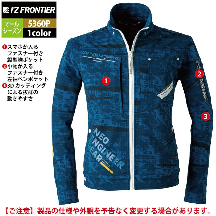 アイズフロンティア 作業服 作業着 作業ズボン アイズフロンティア 作業服 5360P ヘビージャージーカモフラワークジャケット S-4L オールシーズン