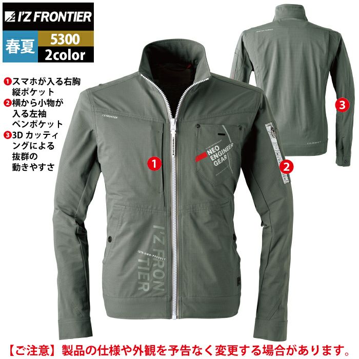 アイズフロンティア 作業服 作業着 作業ズボン アイズフロンティア 作業服 作業着 5300 パウダーエアーストレッチワークジャケット S-4L 春夏用