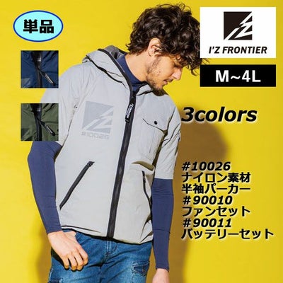 アイズフロンティア 作業服 10026 ナイロン素材A.S.半袖パーカー M-4L 即日出荷一部あり UVカット 大型フード シンプル ファン対応 空調