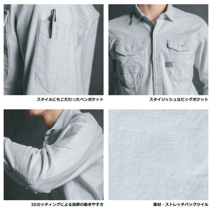 アイズフロンティア 作業服 作業着 作業ズボン アイズフロンティア 作業服 7901 ストレッチツイル3Dワークシャツ S-5L かっこいい おしゃれ 春夏秋冬