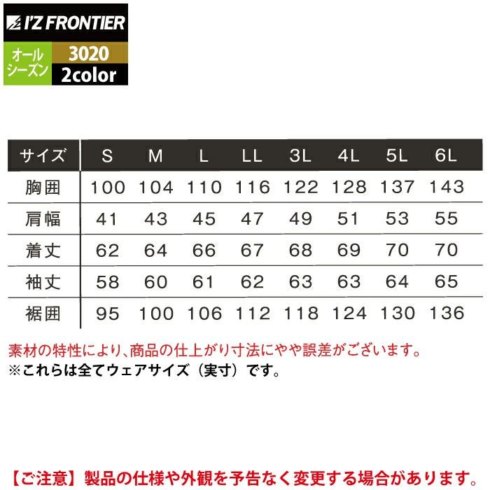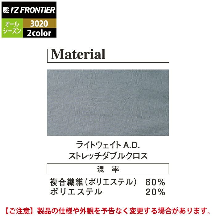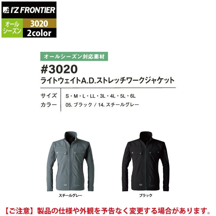 アイズフロンティア 作業服 作業着 作業ズボン アイズフロンティア 作業服 3020 ライトウェイトADストレッチワークジャケット S-6L オールシーズン