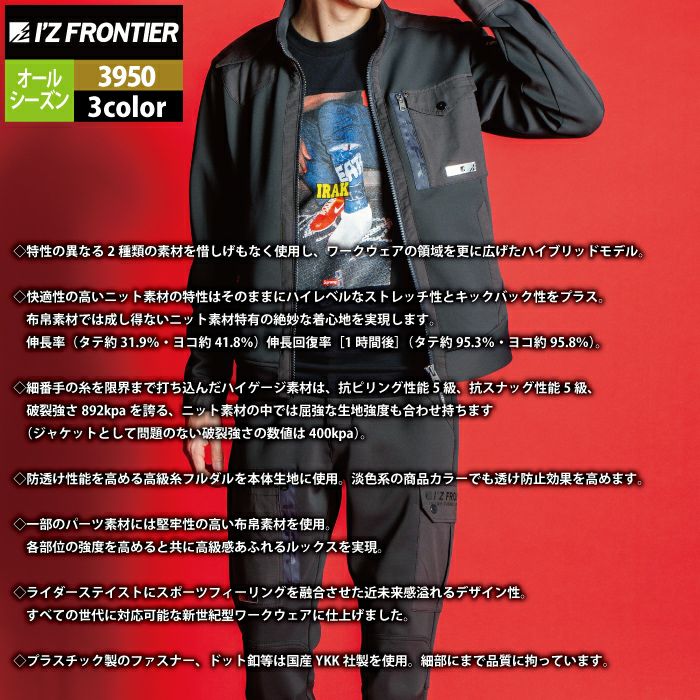 アイズフロンティア 作業服 作業着 作業ズボン アイズフロンティア 作業服 3950 ハイブリッドADストレッチワークジャケット S-4L オールシーズン