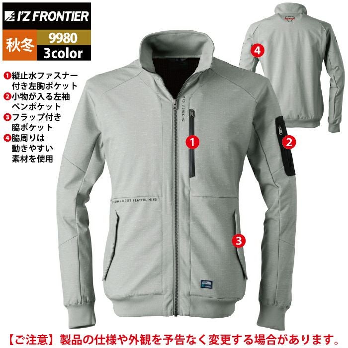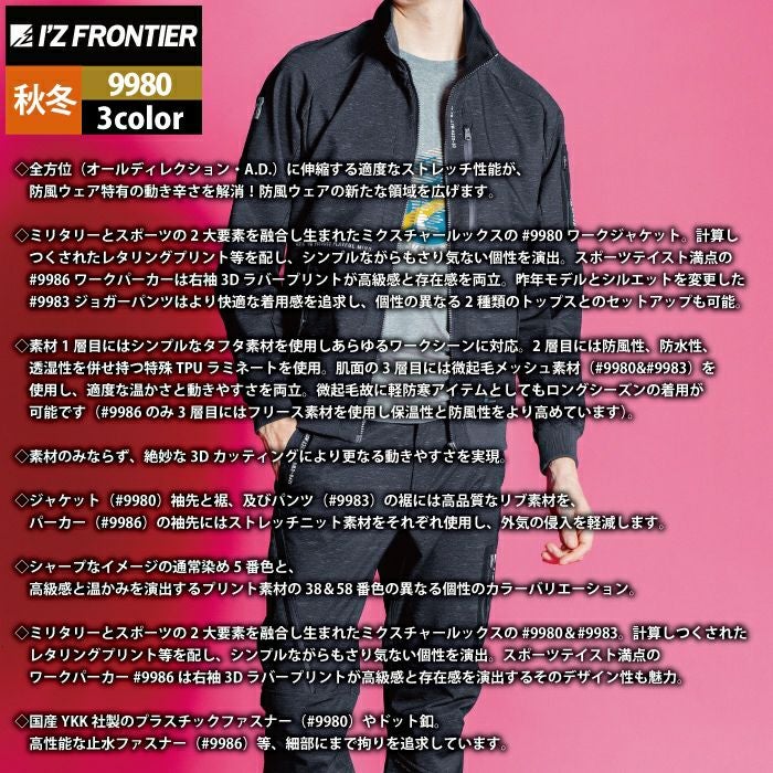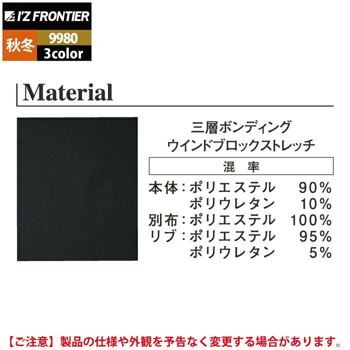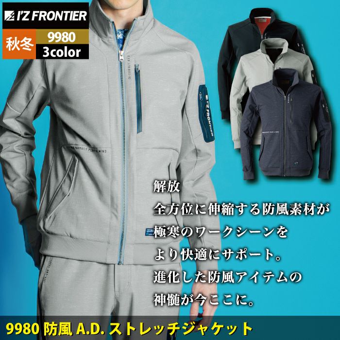 アイズフロンティア 作業服 作業着 作業ズボン アイズフロンティア 作業服 9980 防風ADストレッチワークジャケット S-4L 秋冬用