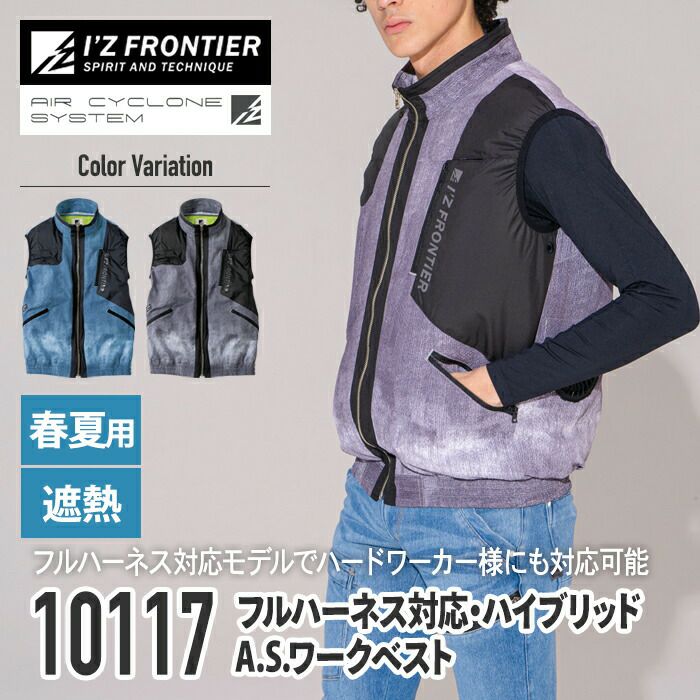 空調服 アイズフロンティア 作業服 作業着 ファン付きウェア (服のみ) アイズフロンティア 作業服 作業着 10117 フルハーネス対応ハイブリッドASワークベスト M-4L 春夏用