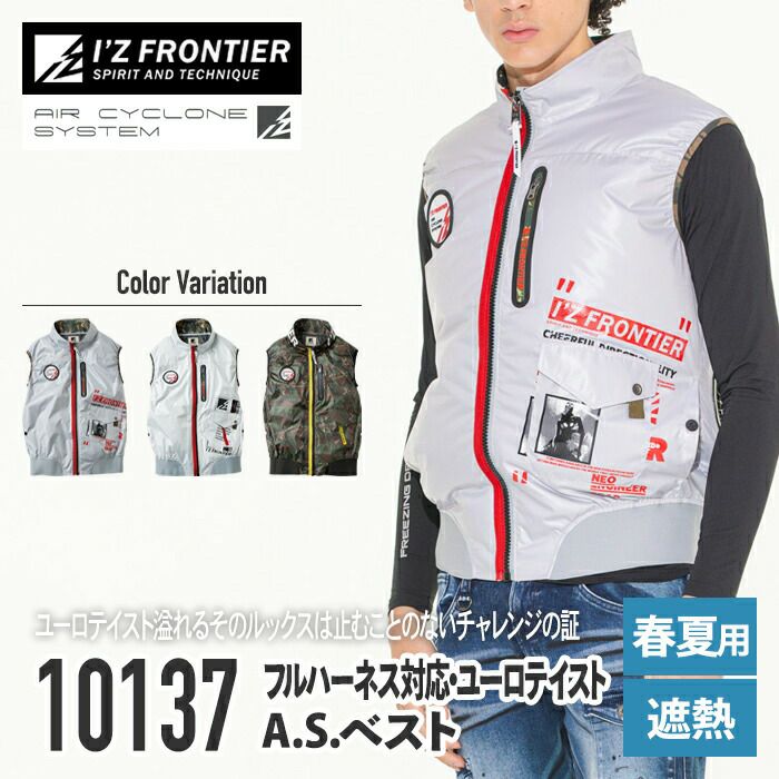 空調服 アイズフロンティア 作業服 作業着 ファン付きウェア (服のみ) アイズフロンティア 作業服 作業着 10137 フルハーネス対応ユーロテイストASベスト M-4L 春夏用